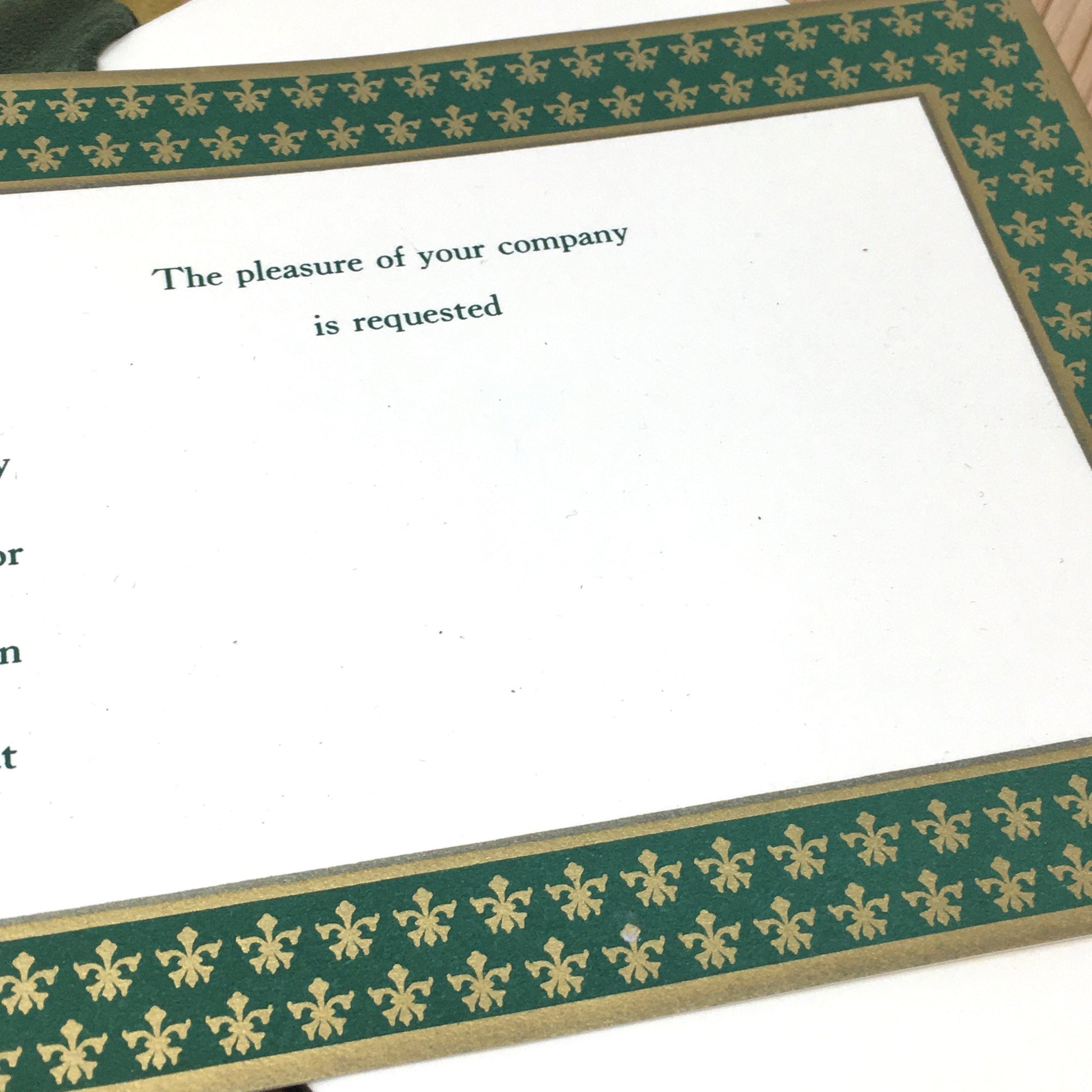 Crane Large Flat Invitations | Green Border Fleur-de-lis