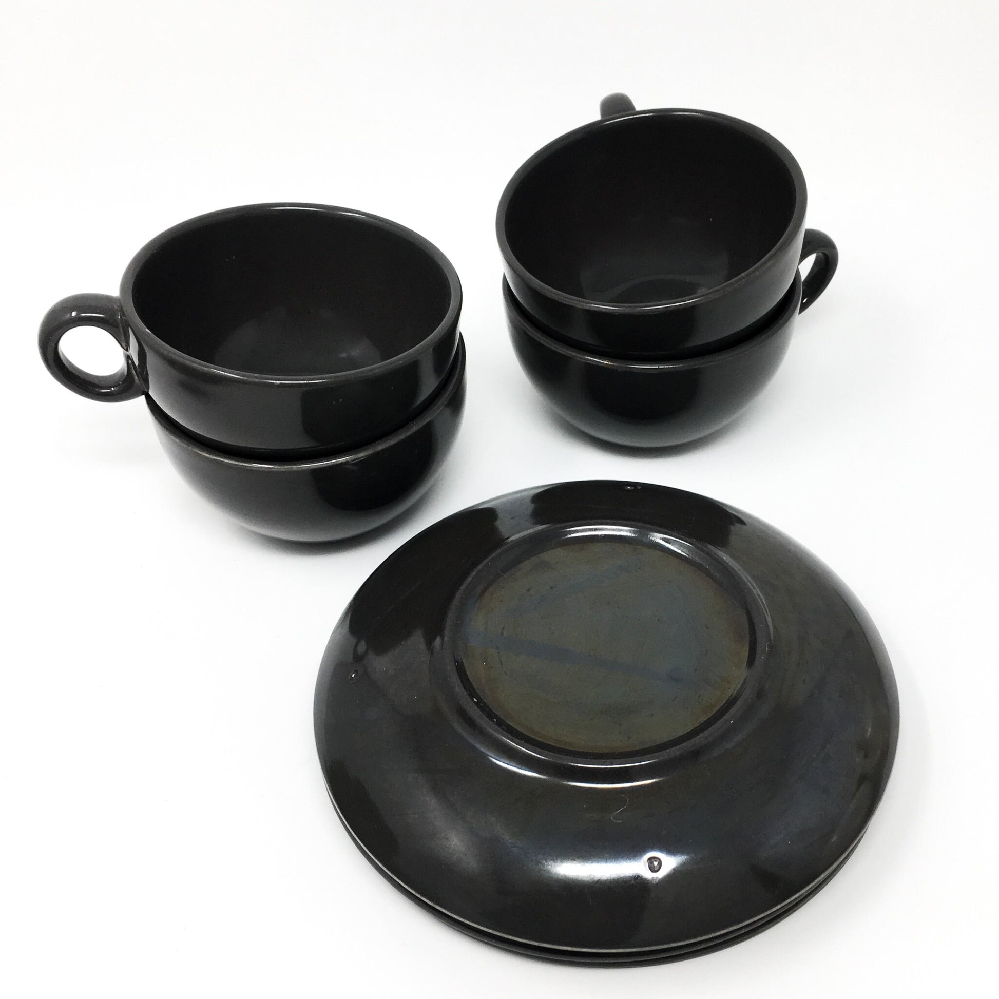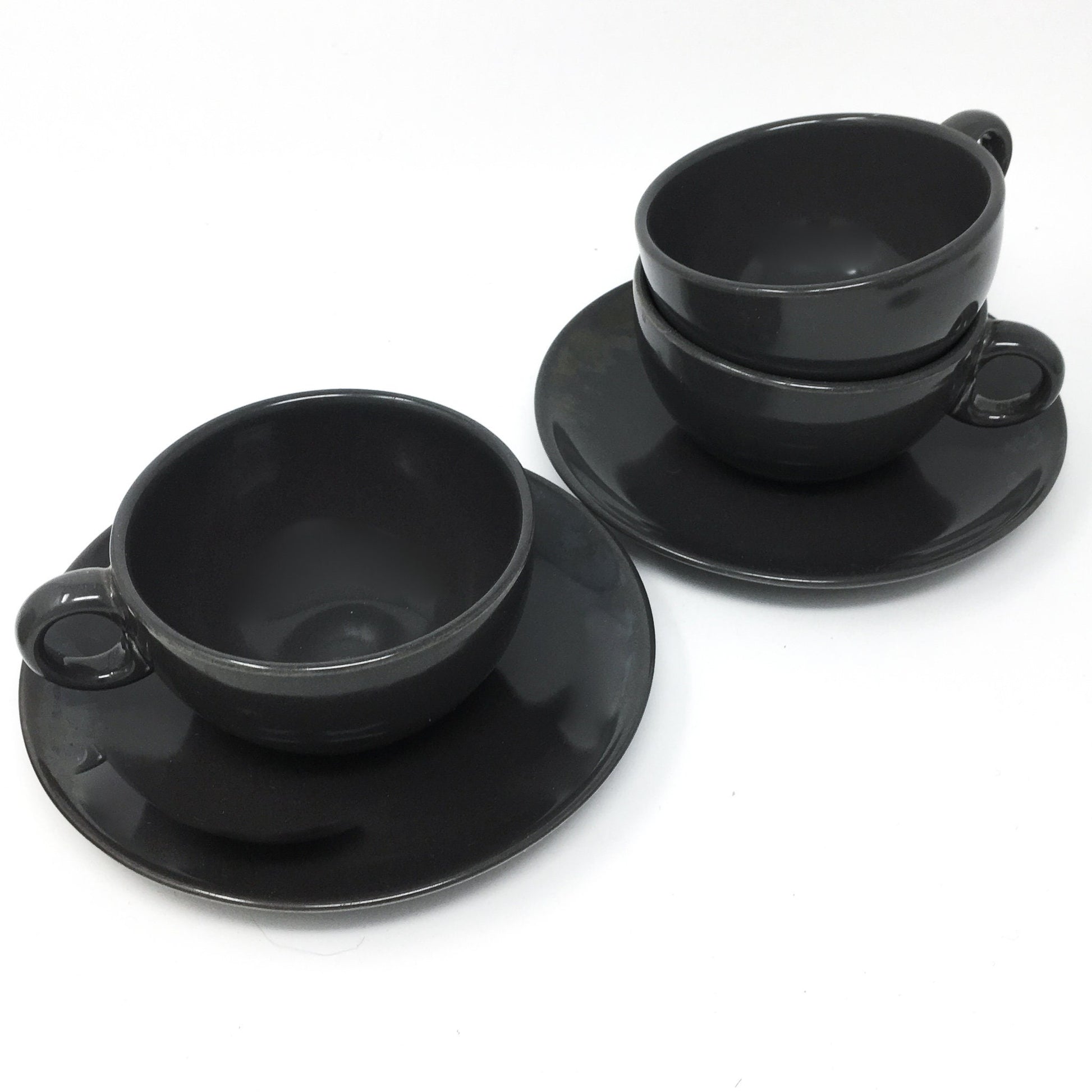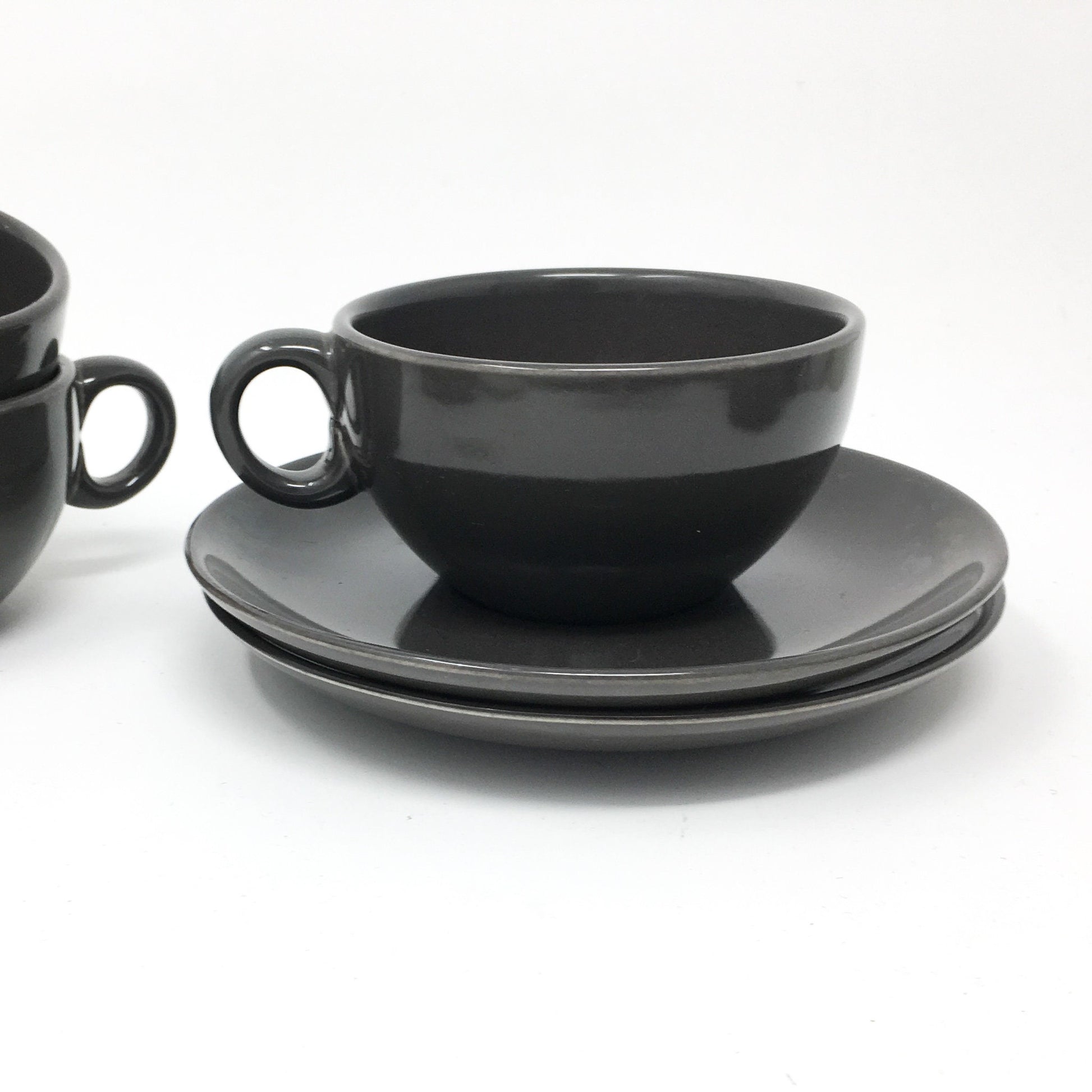 Russel Wright - Charcoal - Coffee Cup and Saucer - Early Shape - Casual China - Everyday Dishes - Dishwasher Safe - Resistant to Stains, Chips and Breaks Casual China was produced by Iroquois China, circa 1951-1967.