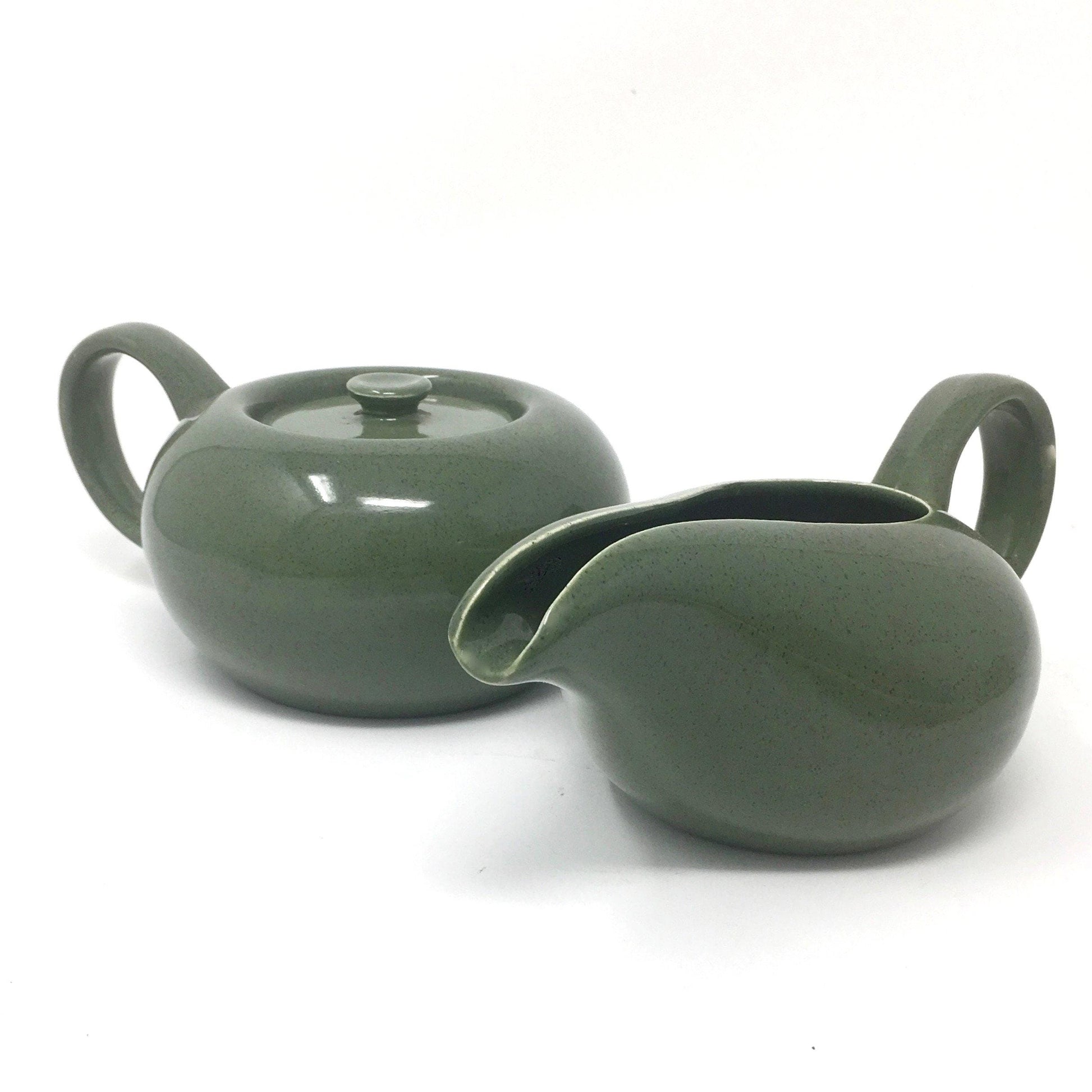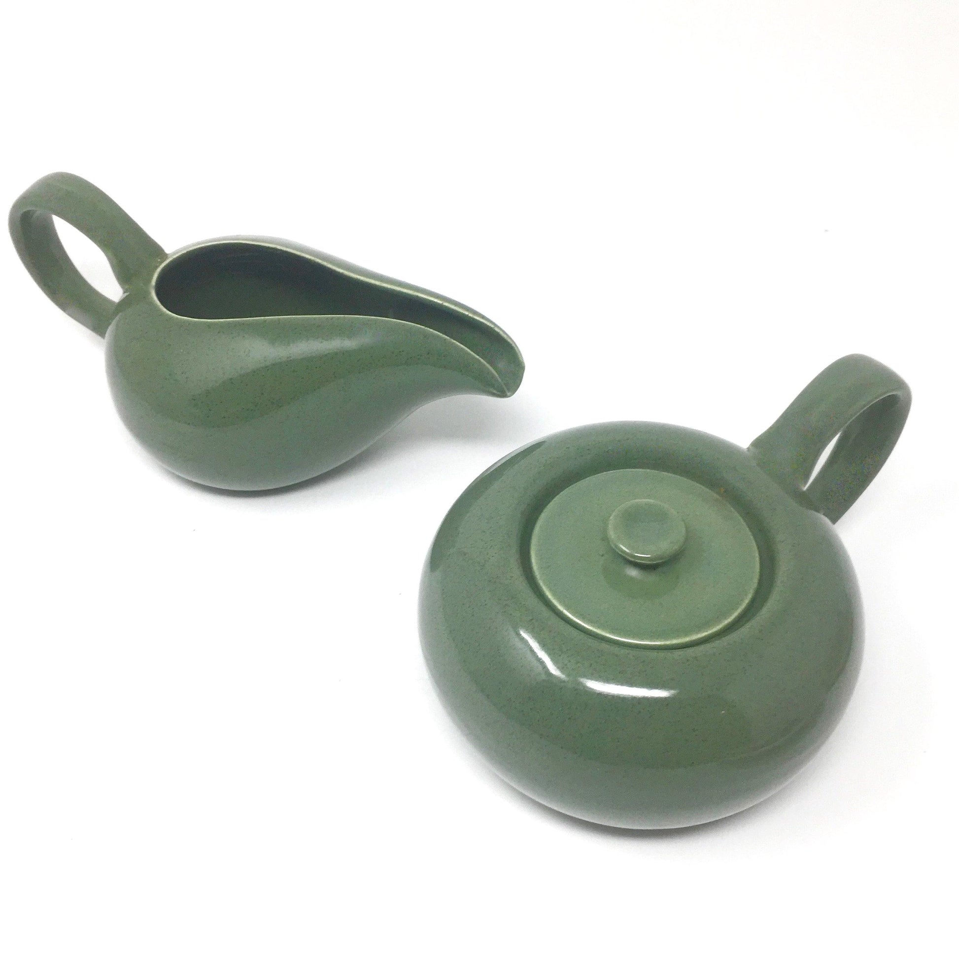 Russel Wright Cedar Green Creamer and Sugar Bowl | American Modern